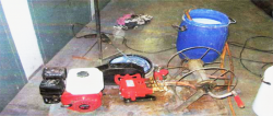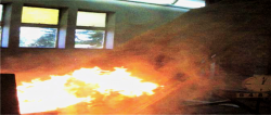 The sample consisted of two thatch roof specimens, spray treated with “Blus Pro FR 100” fire retardant chemical by means of a spray gun and compressor at the Fire Protection Engineering laboratory of the SABS in Pretoria on 11 October 2007