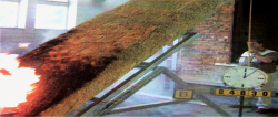 The gas flame was applied to the thatch for 10 min. as required by Class A and B roof coverings.